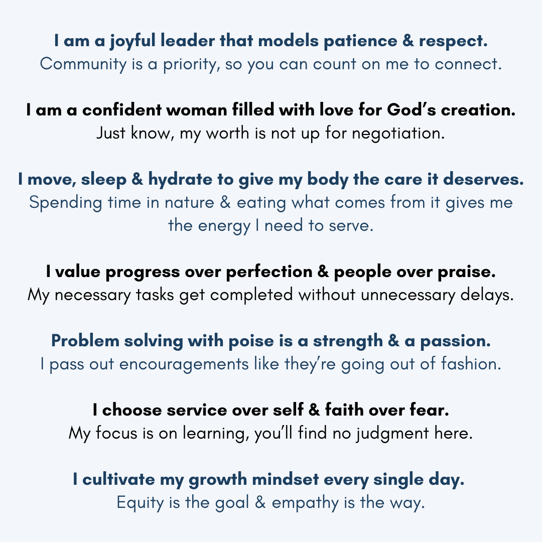 I look at my Identity Statement daily and update it annually - this practice has helped me tremendously in understanding my values, expressing them to others and living them out more intentionally and more consistently.